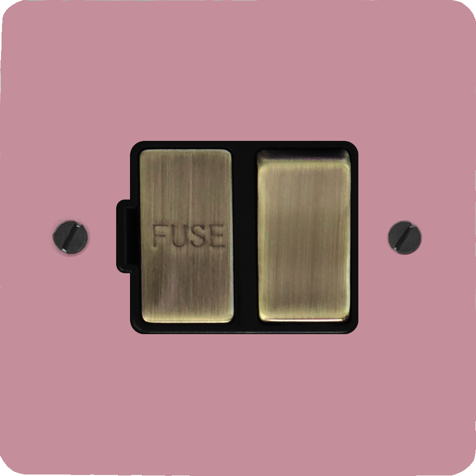 Flat Gloss Pink Switched Fused Spur (Black Insert/Antique Brass Switch) - FGP357-AB