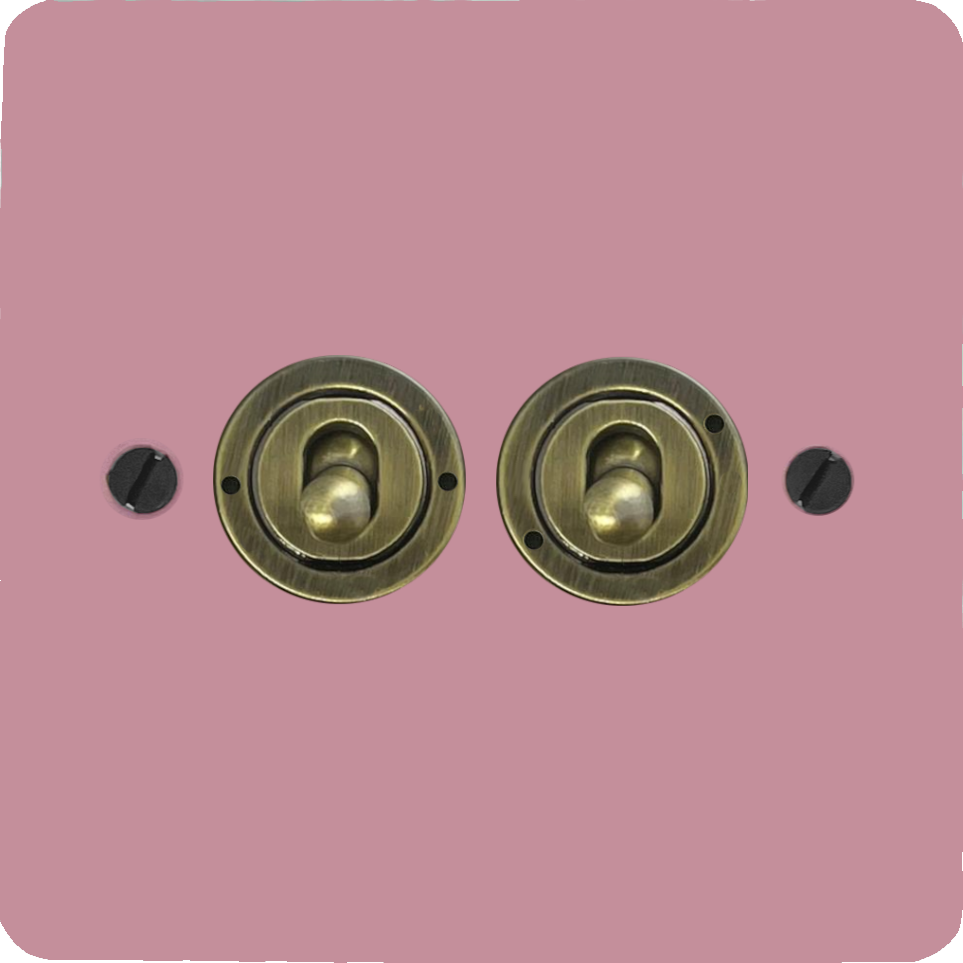 Flat Gloss Pink Toggle Switch (2 Gang/Antique Brass Toggle) - FGP382-AB