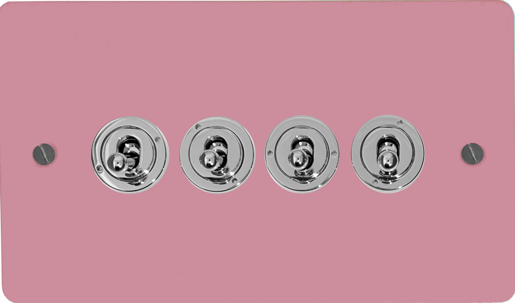 Flat Gloss Pink Toggle Switch (4 Gang/Polished Chrome Toggle) - FGP384-PC