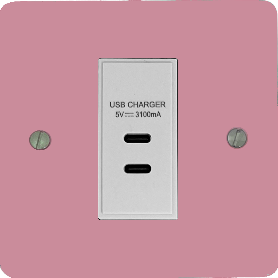 Flat Gloss Pink USB Charger (2x USB-C) (1 Gang/White Insert) - FGP42W