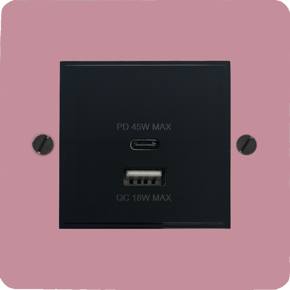 Flat Gloss Pink USB Charger (Dual USB A + C Quick Charge) (1 Gang/Black Insert) - FGP43B