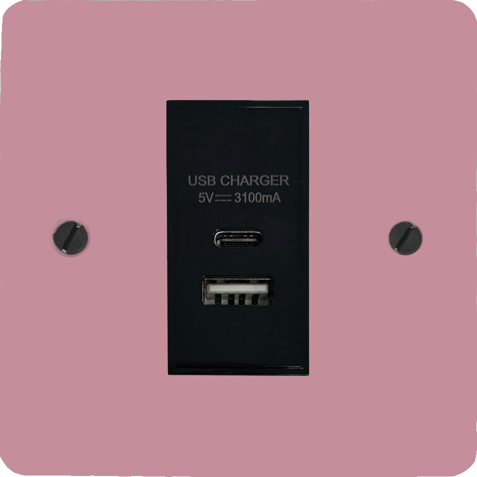 Flat Gloss Pink USB Charger (USB-A and USB-C) (1 Gang/Black Insert) - FGP41B
