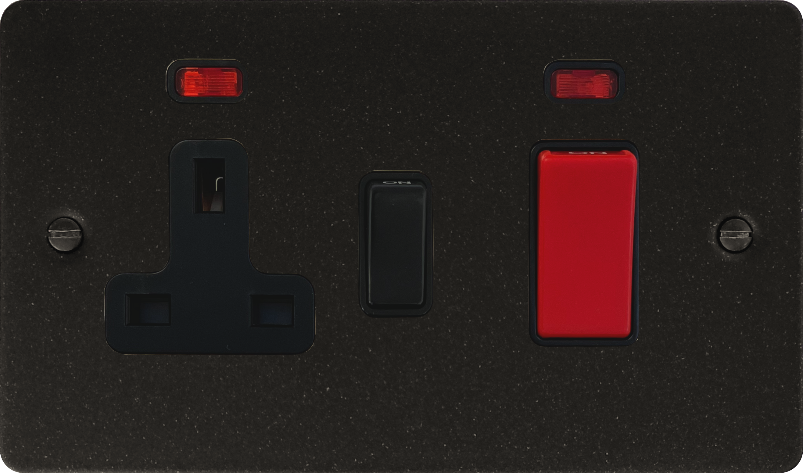 This is a 1 Gang Cooker Switch with Socket on a flat graphite plate.