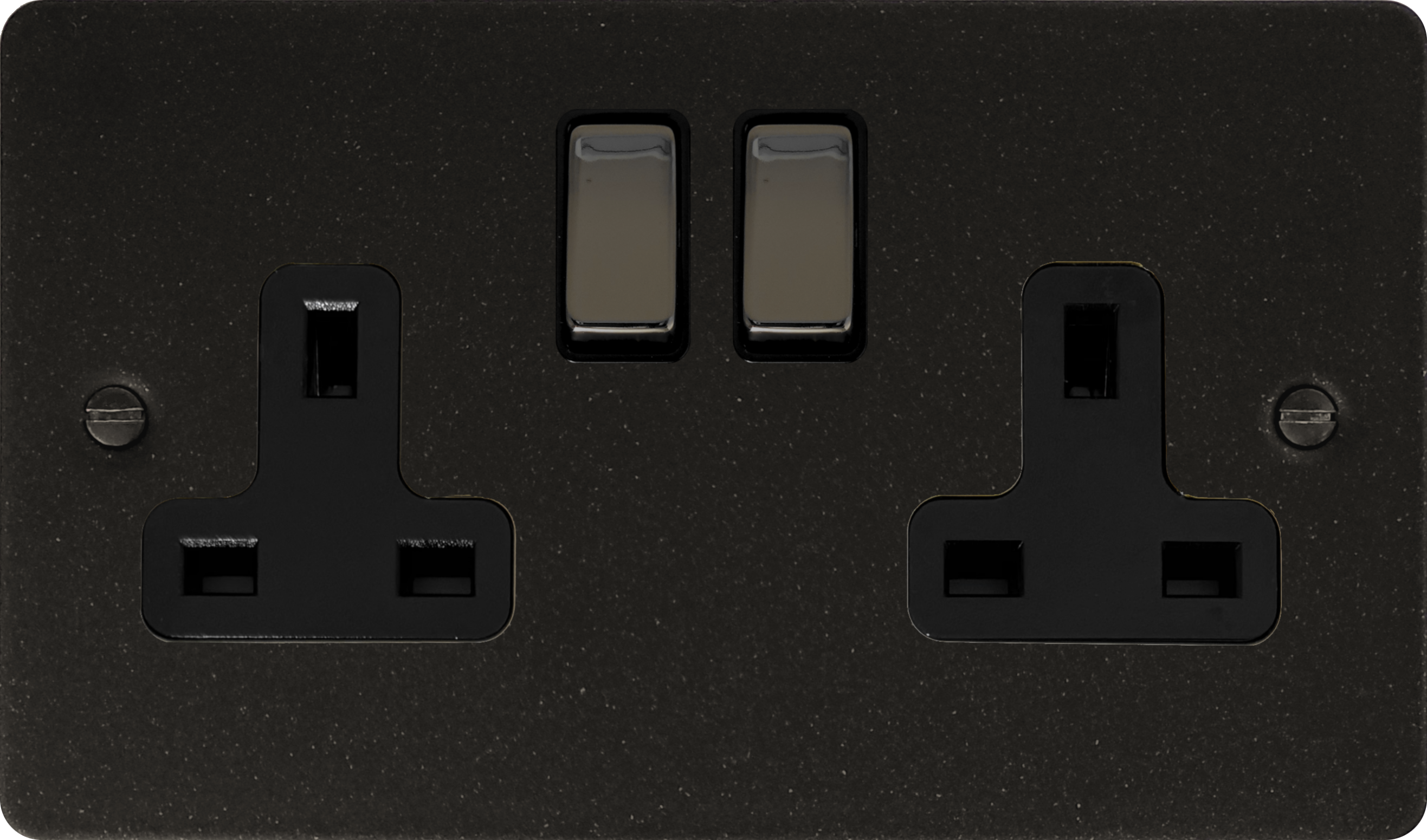 This is a 2 Gang 13A Switched Socket on a flat graphite plate.