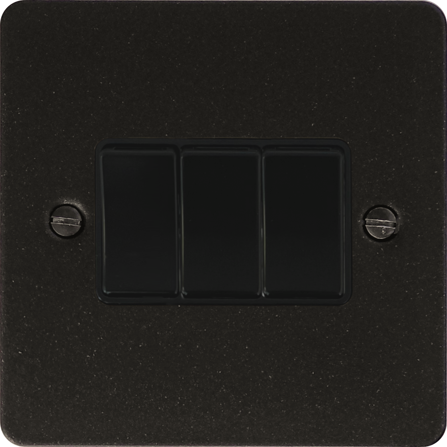 Flat Graphite Light Switch (3 Gang/Black Switches) - FG3B