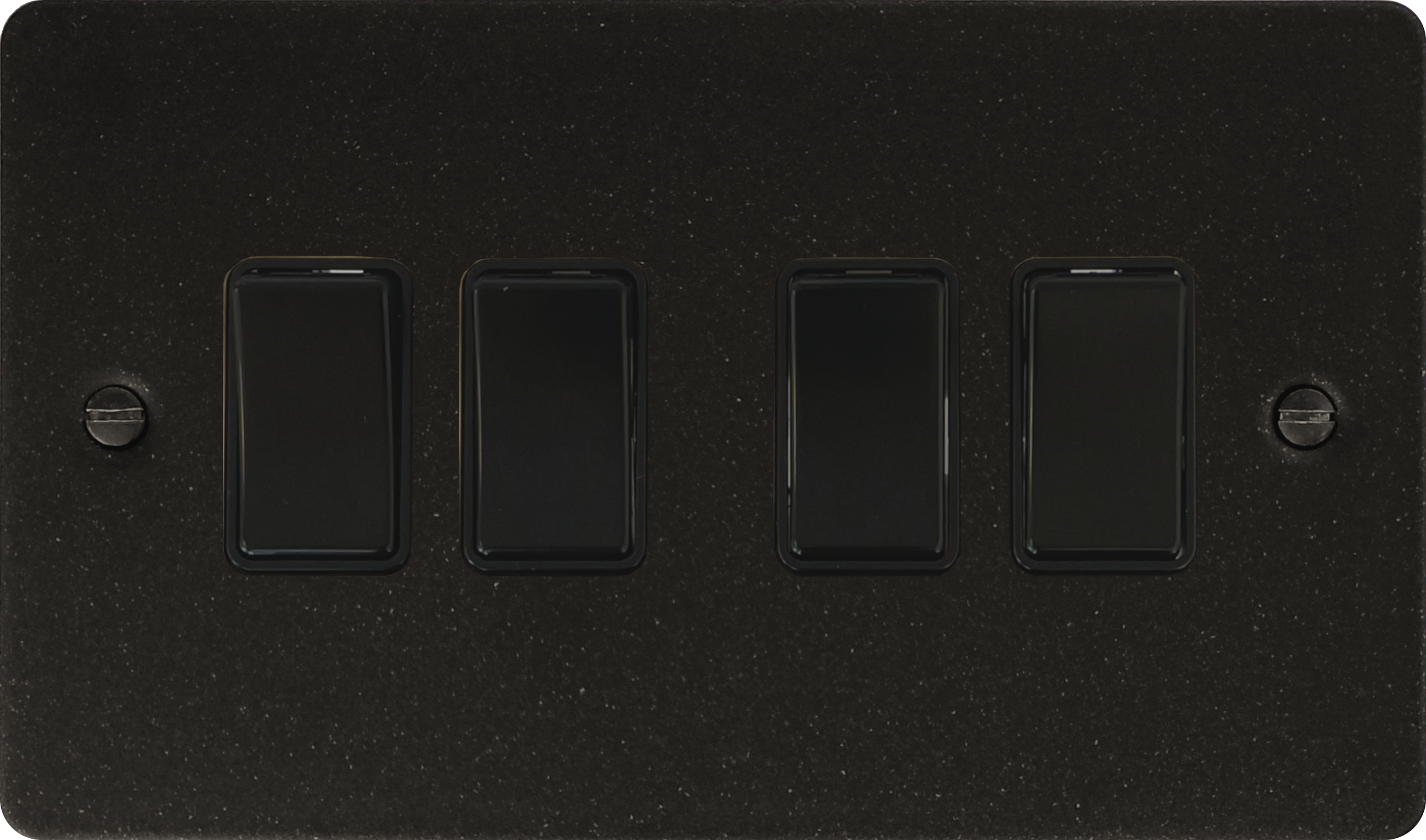 Flat Graphite Light Switch (4 Gang/Black Switches) FL.4B.G