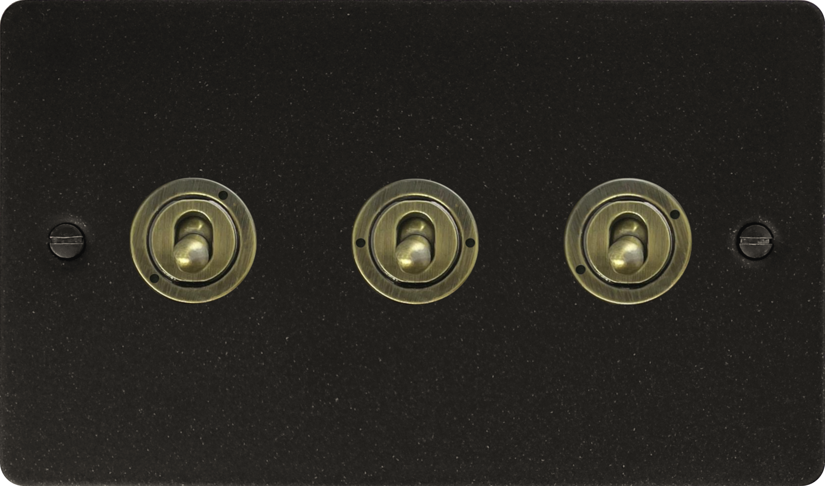 Flat Graphite Toggle Switch (3 Gang/Antique Brass Toggle) - FG383-AB