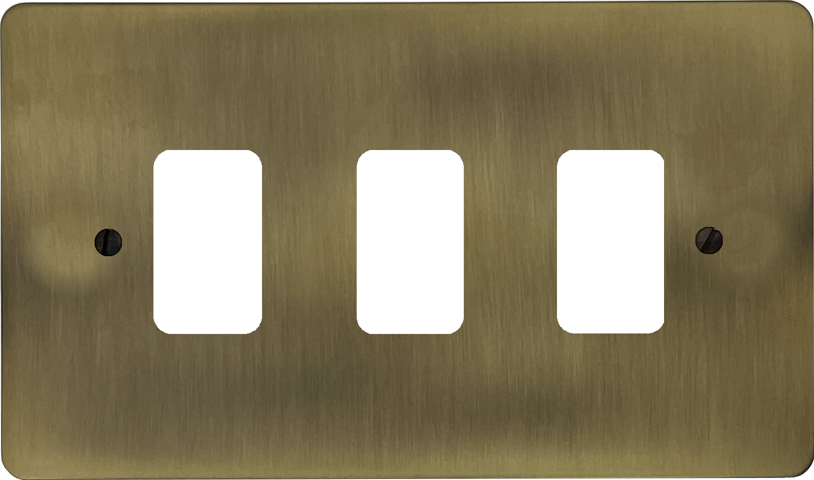 Flat Light Antique Brass Grid Plate (3 Gang) - FLAB73