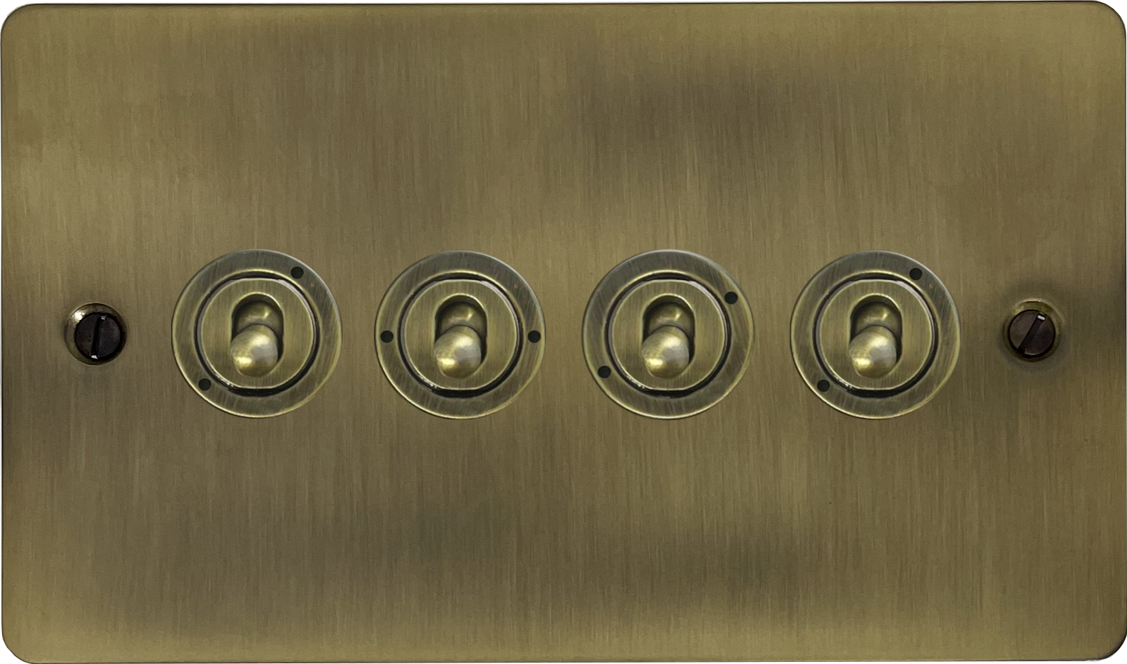 Flat Light Antique Brass Toggle Switch (4 Gang/Antique Brass Toggle) FL.384.LAB