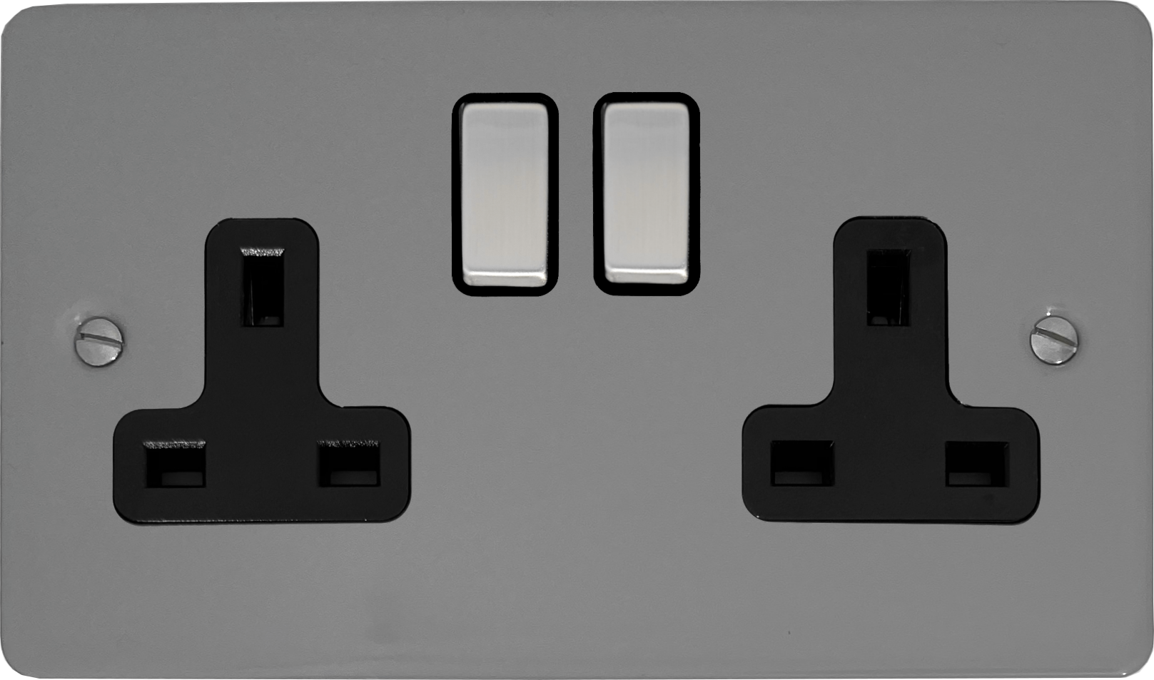 Flat light grey Double Socket (Black Insert/ Metal Switches) FL.310.LG