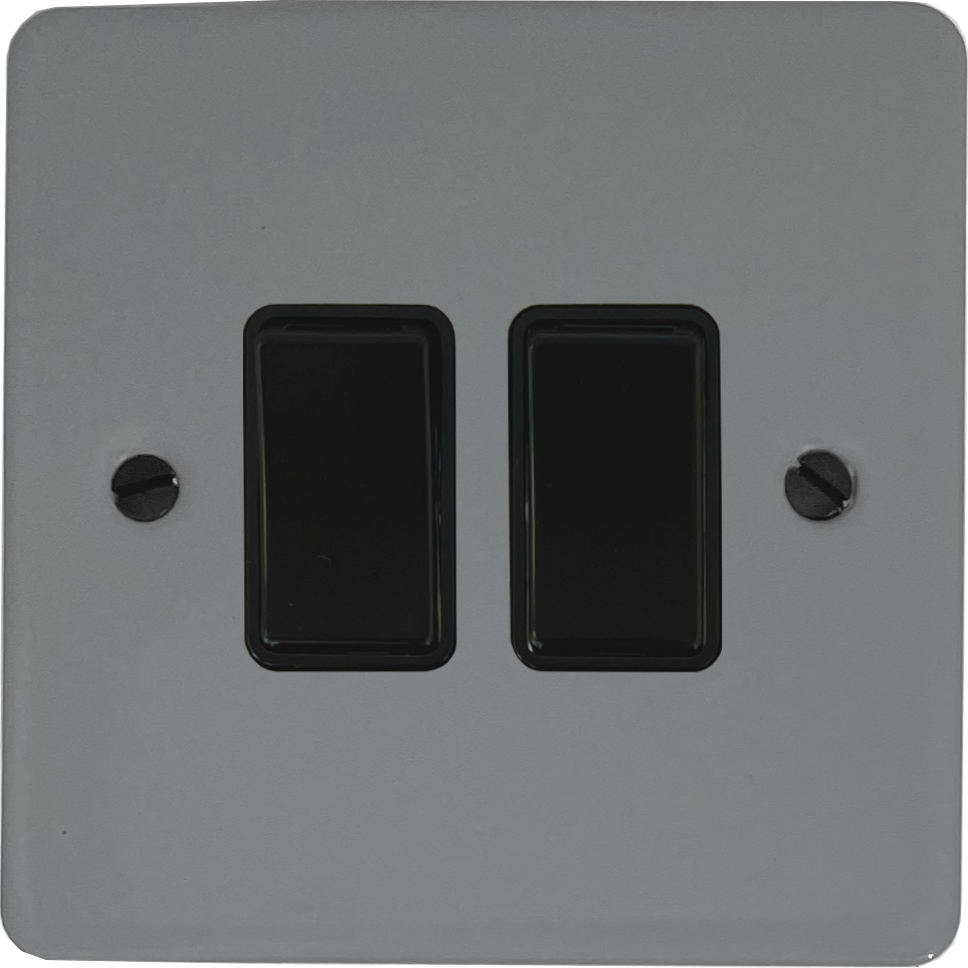 Flat light grey Light Switch (2 Gang/Black Switches) FL.2B.LG