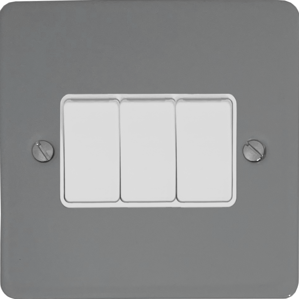 Flat light grey Light Switch (3 Gang/White Switches) FL.3W.LG