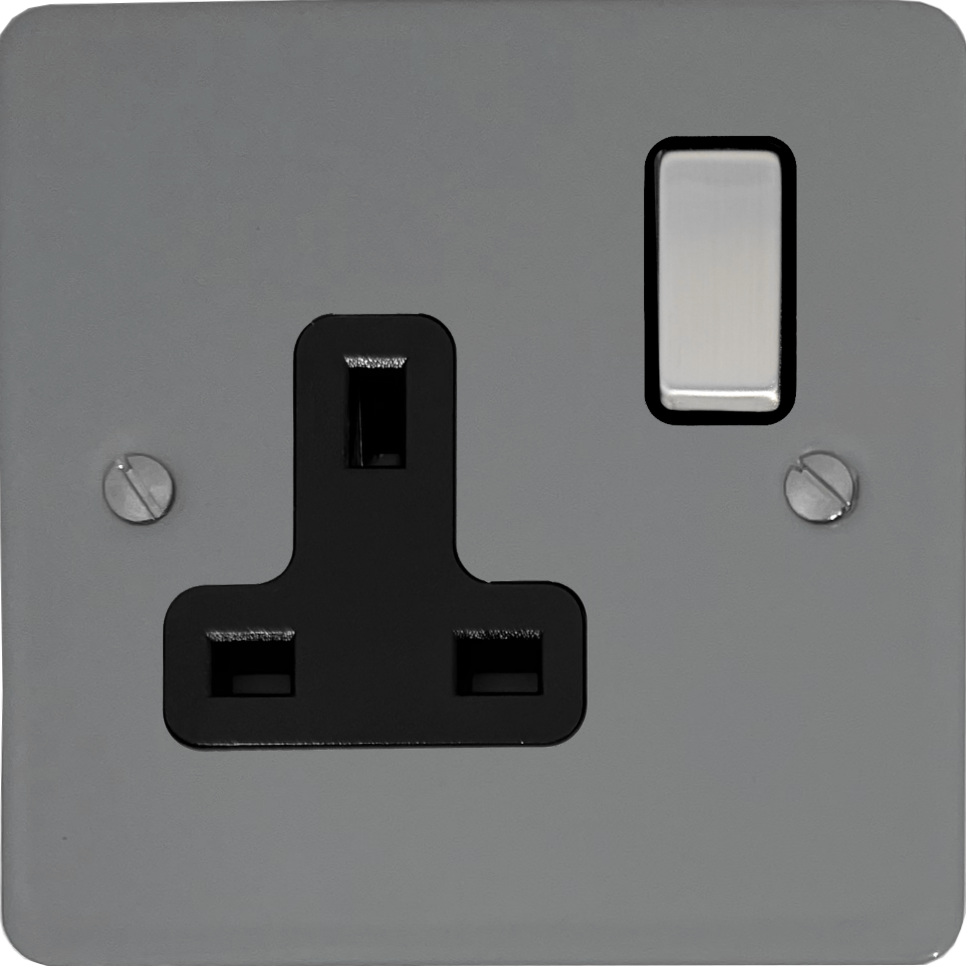 Flat light grey Single Socket (Black insert/Metal Switch) FL.309.LG