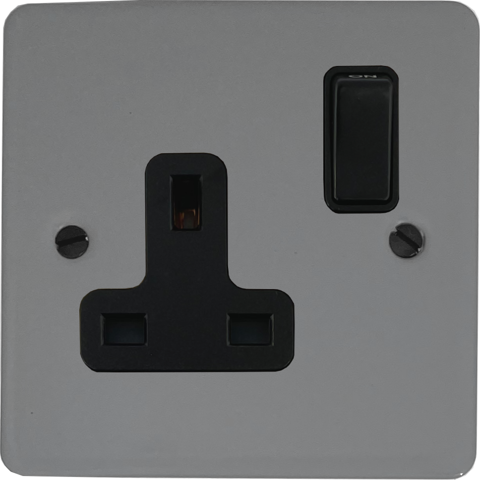 Flat light grey Single Socket (Black Switch) - FLG9B