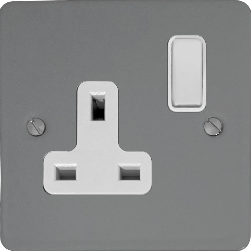 Flat light grey Single Socket (White Switch) FL.9W.LG