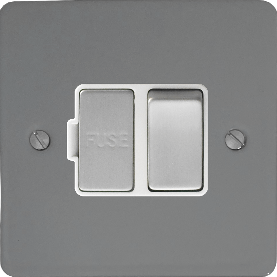 Flat light grey Switched Fused Spur (White insert/Metal Switch) FL.257.LG