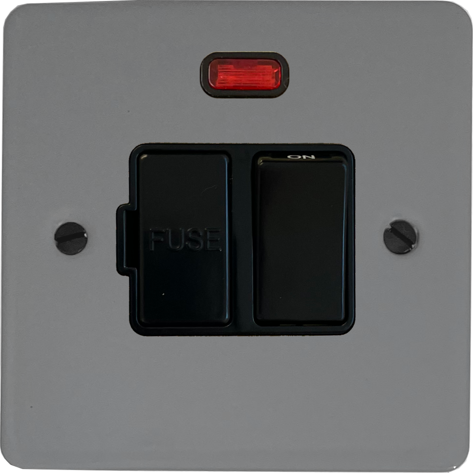 Flat light grey Switched Fused Spur with Neon (Black Switch) FL.27B.LG