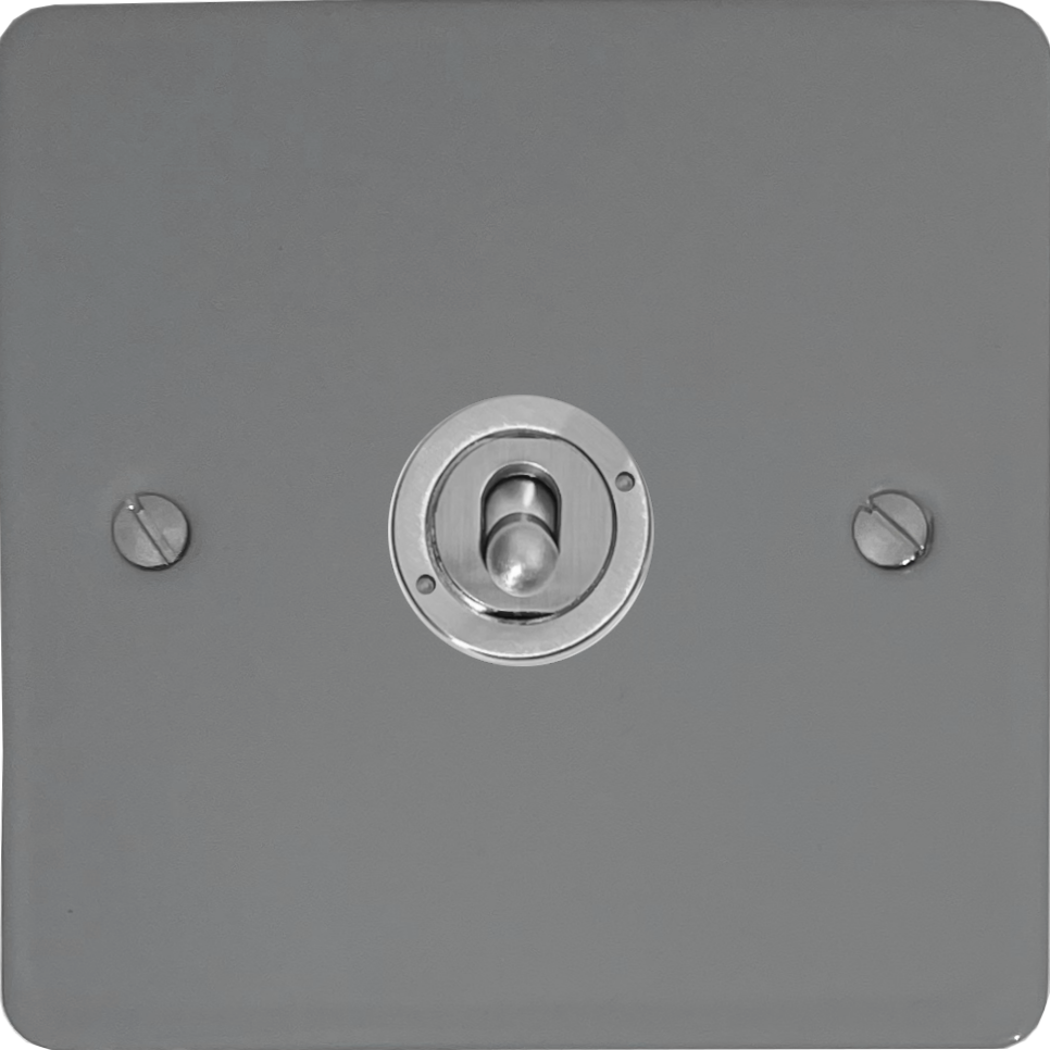 Flat light grey Toggle Switch (1 Gang/Brushed Steel Toggle) FL.381.LG