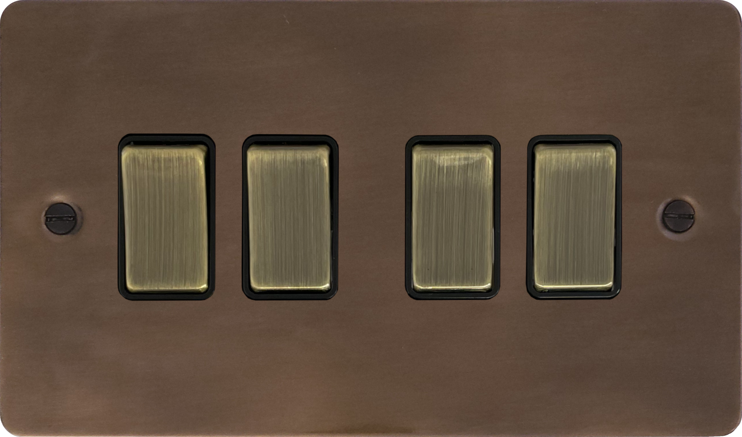 Flat Medium Bronze Light Switch (4 Gang/Black Insert/ Antique Brass Switches) FL.304AB.MBZ