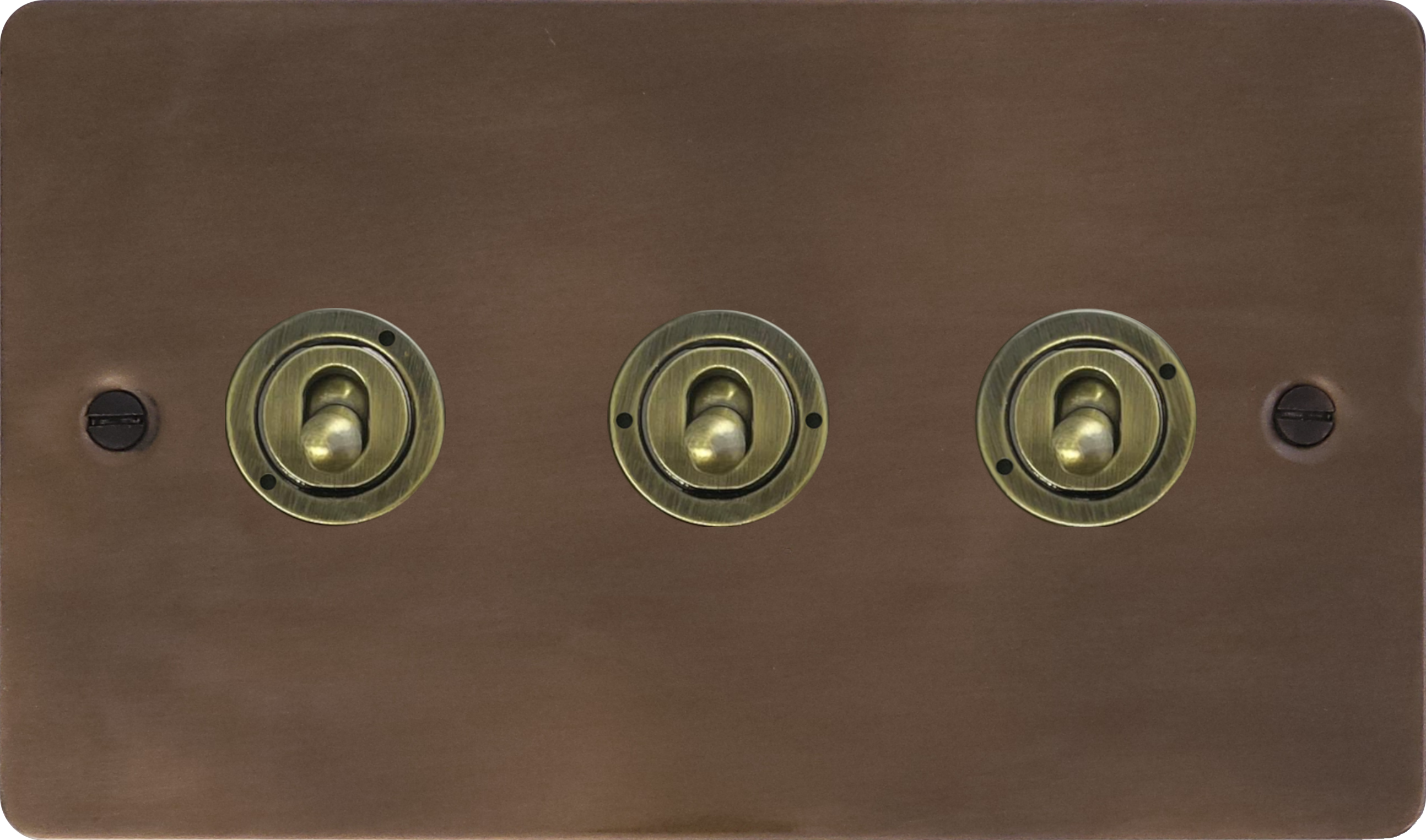 Flat Medium Bronze Toggle Switch (3 Gang/Antique Brass Toggle) FL.383AB.MBZ