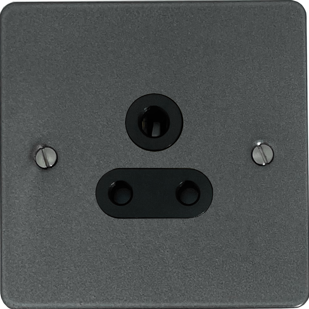 Flat Pewter 5A 3 Pin Socket (Black Insert) FL.59B.P