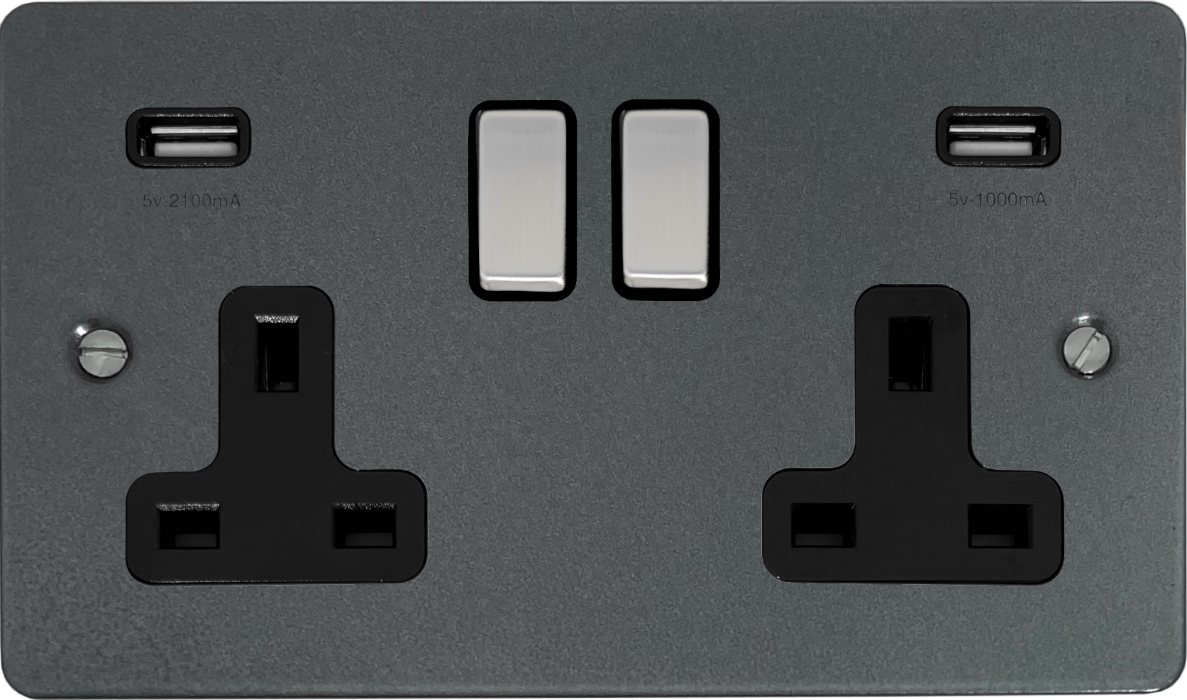 Flat Pewter Double Socket with USB (Black Insert/Steel Switches) FL.3910.P