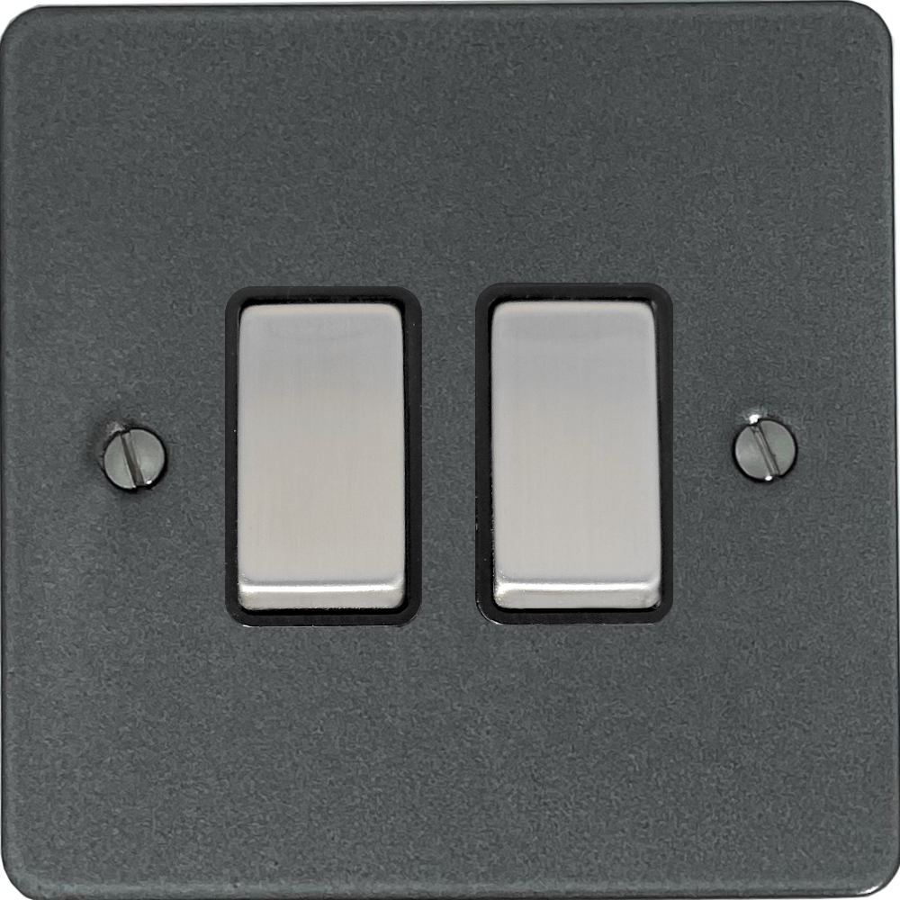Flat Pewter Light Switch (2 Gang/Black Insert/Steel Switches) FL.302.P