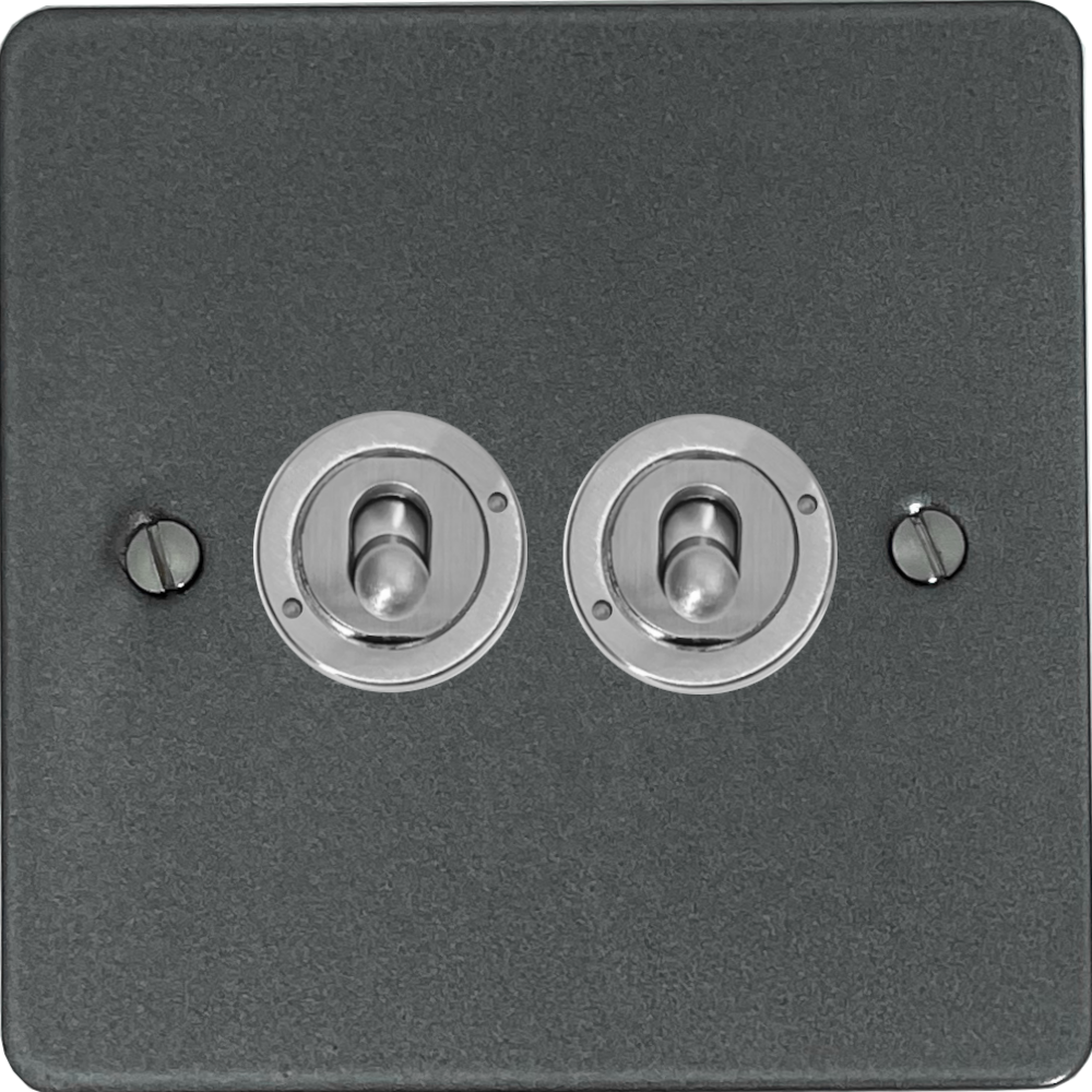 Flat Pewter Toggle Switch (2 Gang/Brushed Steel Toggle) FL.382.P