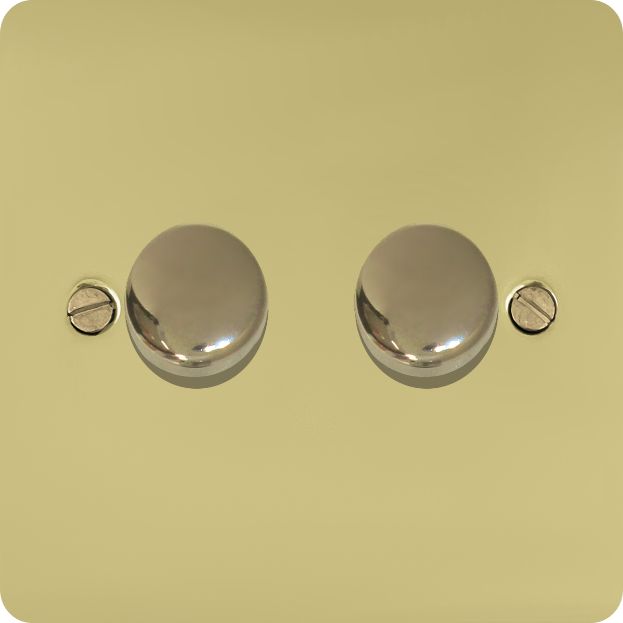 Flat Polished Brass Hand Waxed LED Dimmer (2 Gang) - FHX522