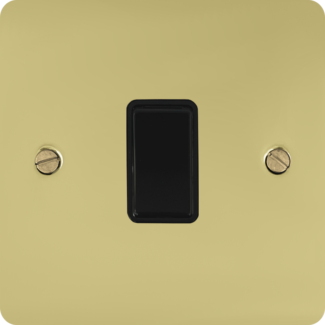 Flat Polished Brass Hand Waxed Light Switch (1 Gang/Black Switch) FL.1B.HX