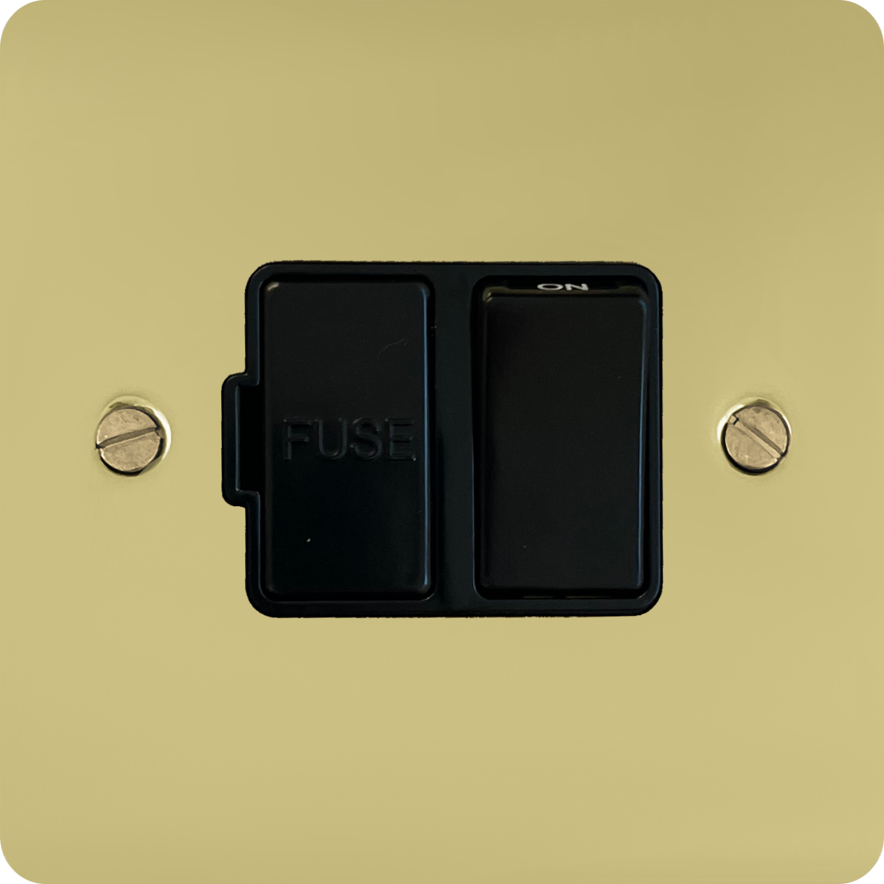 Flat Polished Brass Hand Waxed Switched Fused Spur (Black Switch) FL.57B.HX