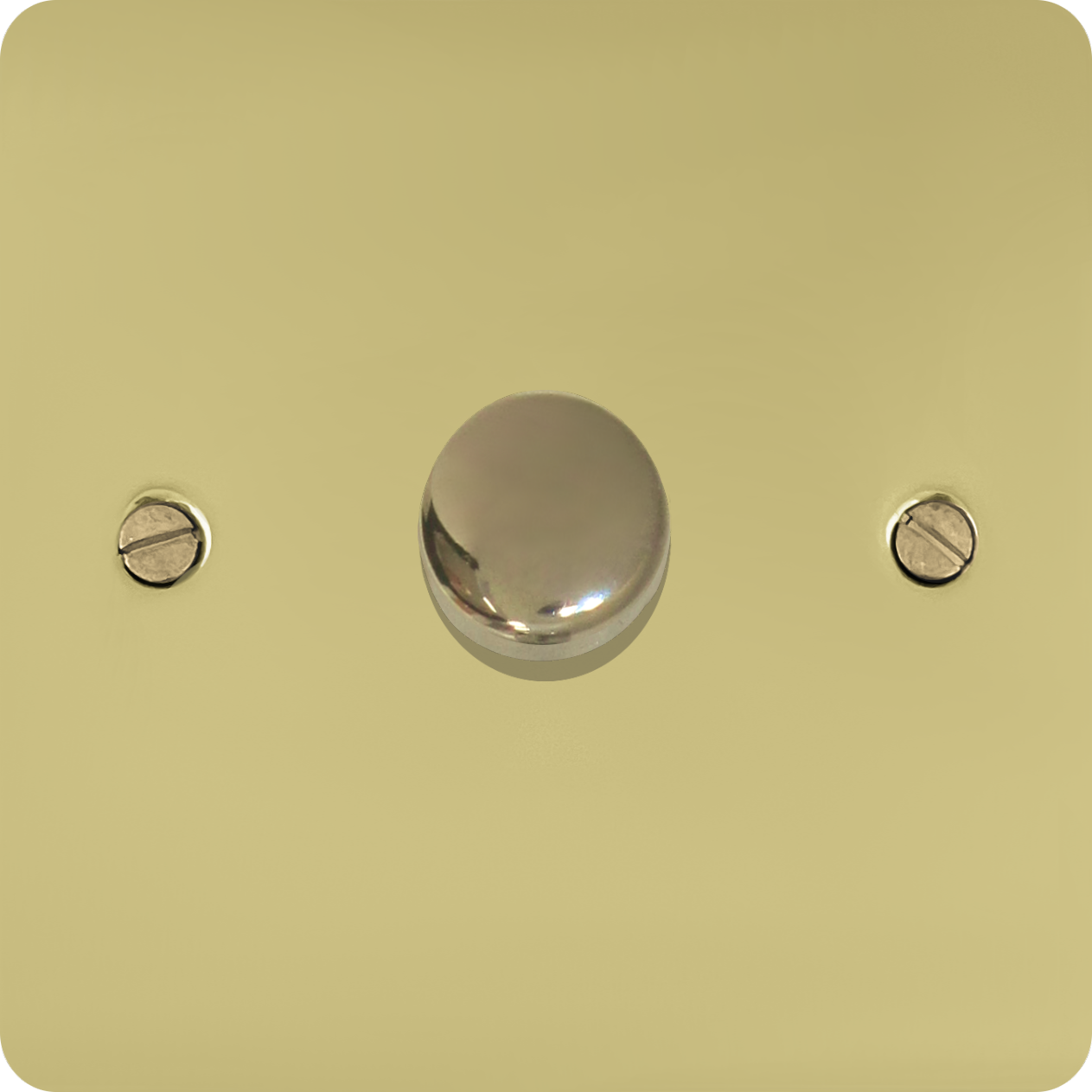 This is a one gang LED dimmer on a flat polished brass plate.