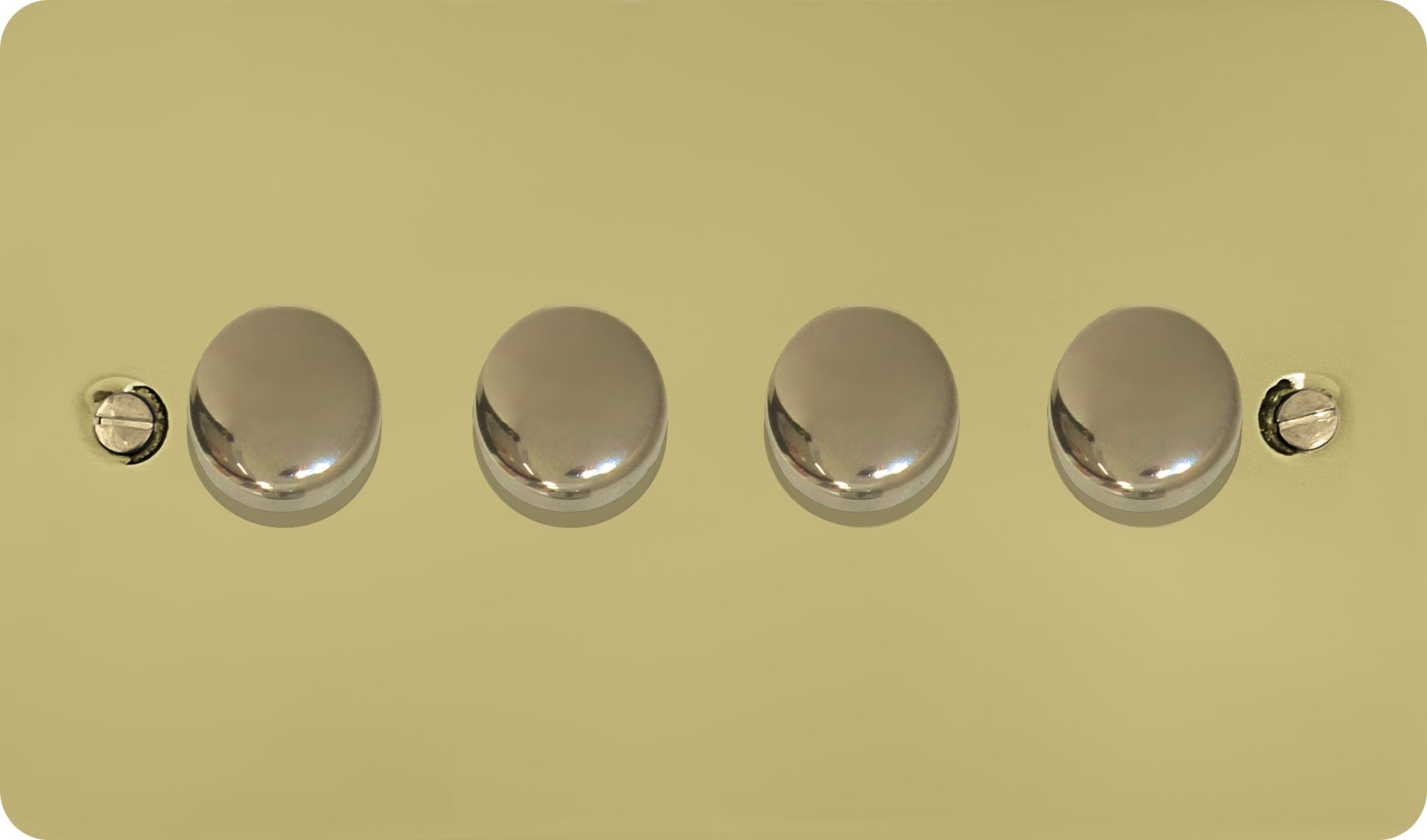 This is a 4 Gang LED Dimmer on a flat polished brass plate.