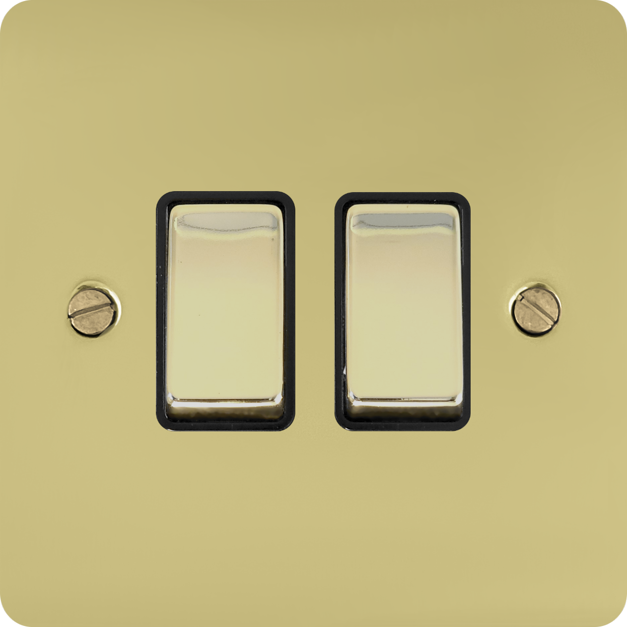 This is a flat polished brass two gang light switch.