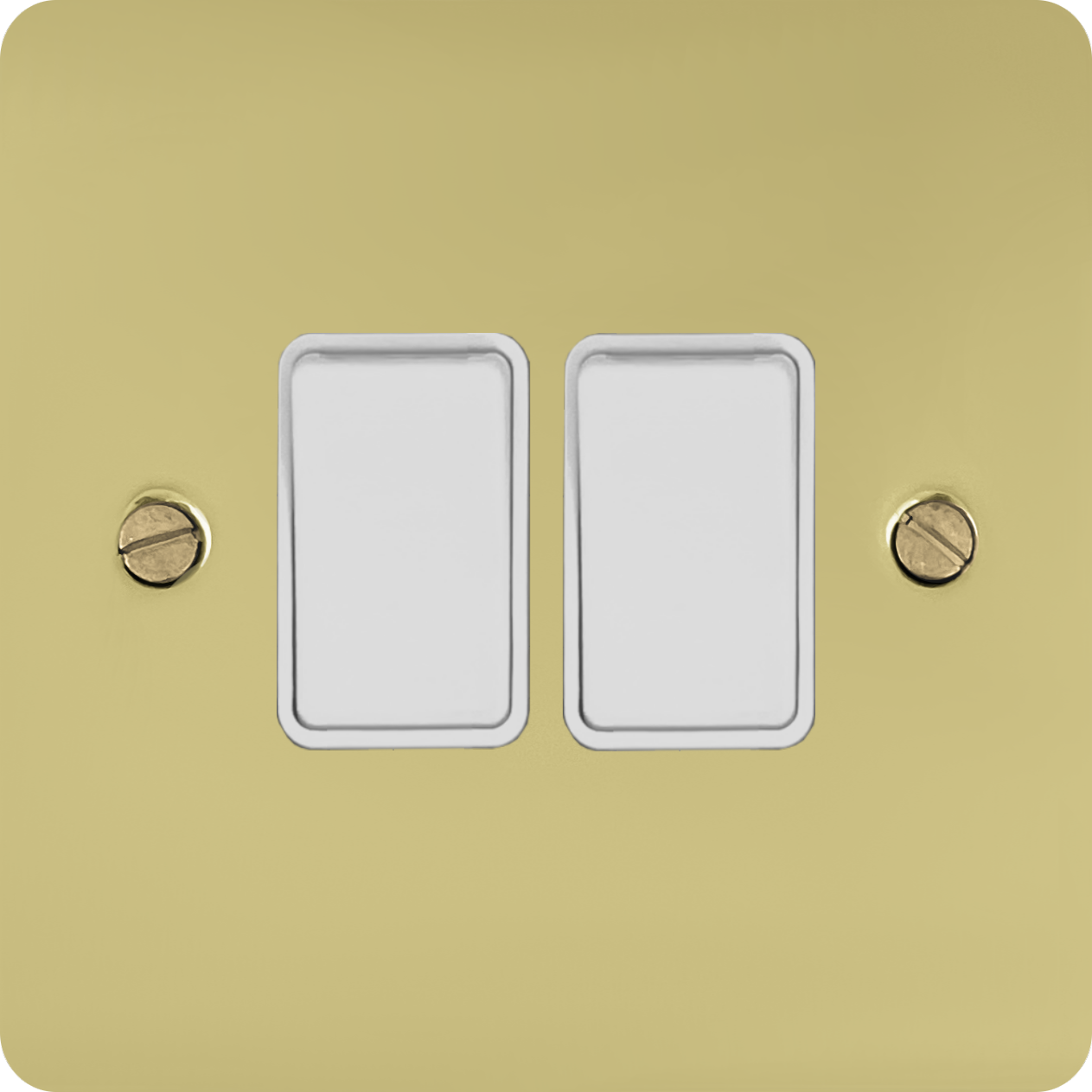 Flat Polished Brass Light Switch (2 Gang/White Switches) FL.2W.B