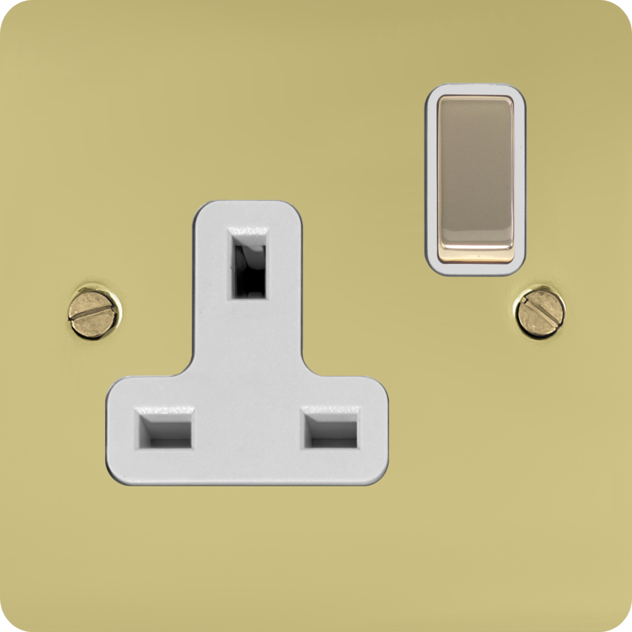 Flat Polished Brass Single Socket (Brass Switch/White Inserts) - FB209