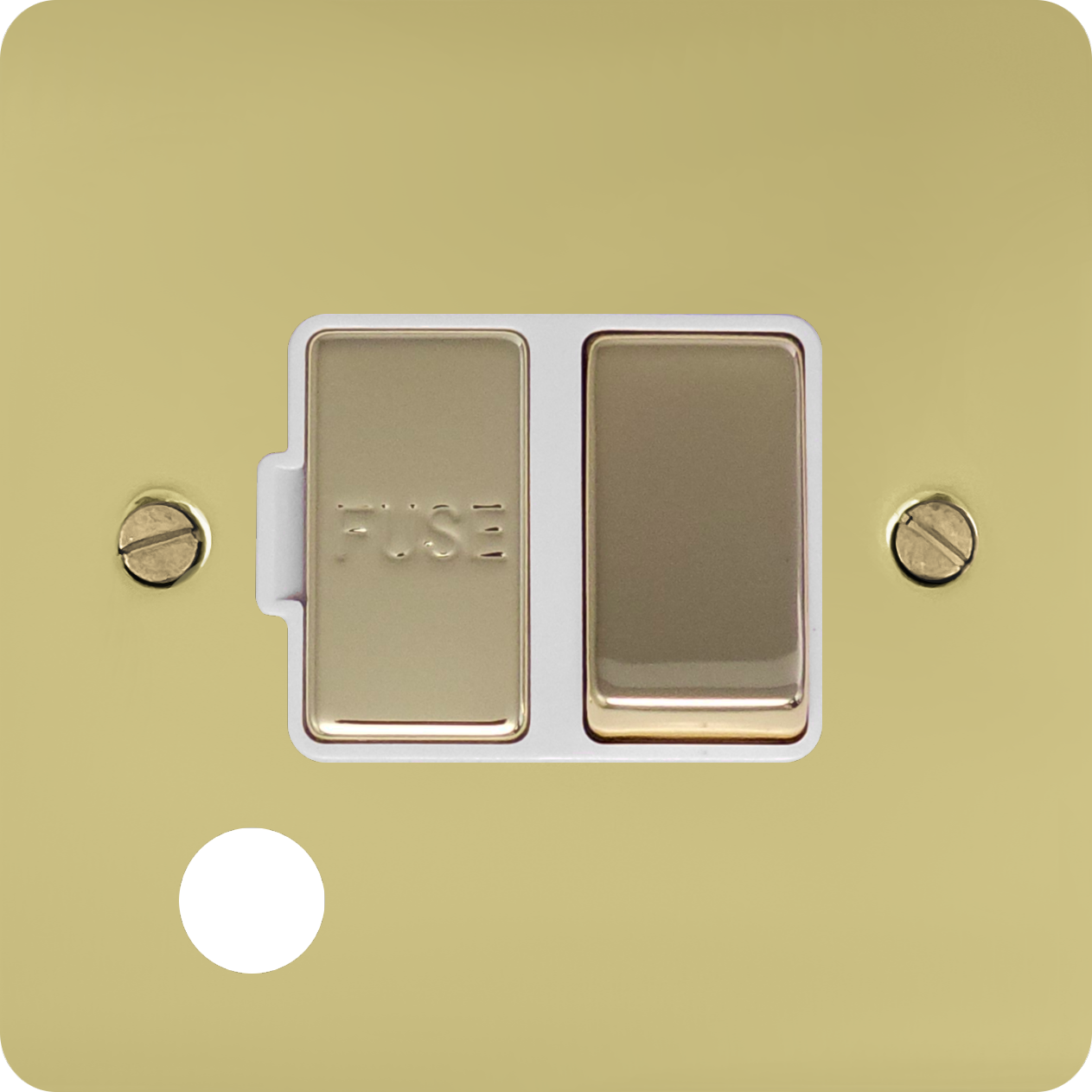 Flat Polished Brass Switched Fused Spur with Flex Outlet (Brass Switch/White Inserts) FL.256.B