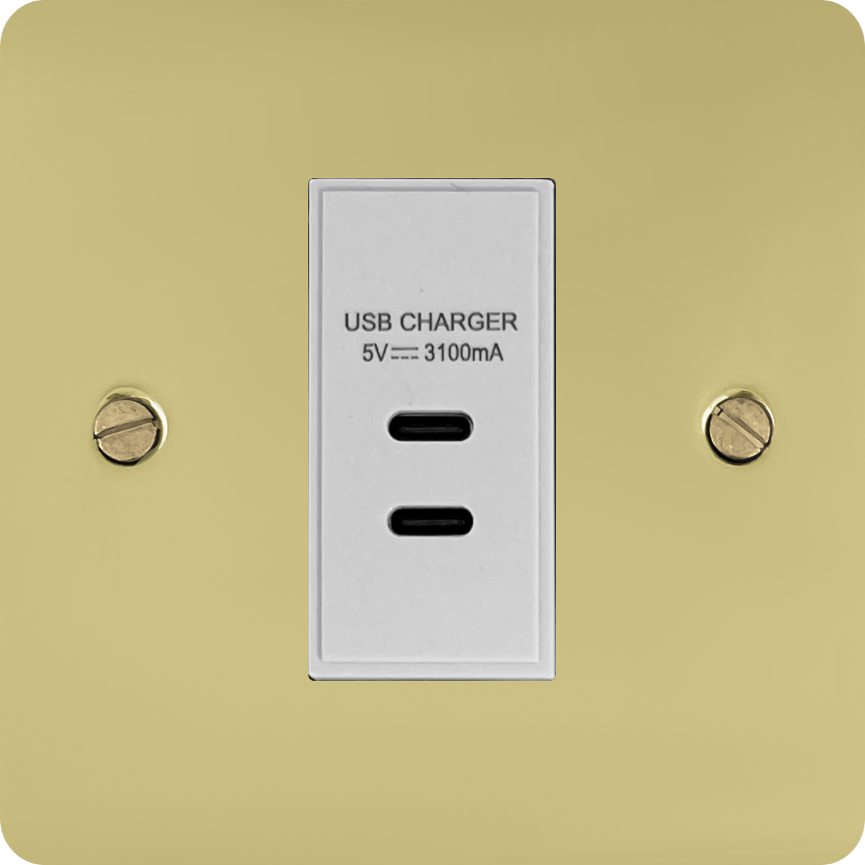 Flat Polished Brass Unlacquered USB Charger (2x USB-C) (1 Gang/White Insert) FL.42W.BUL