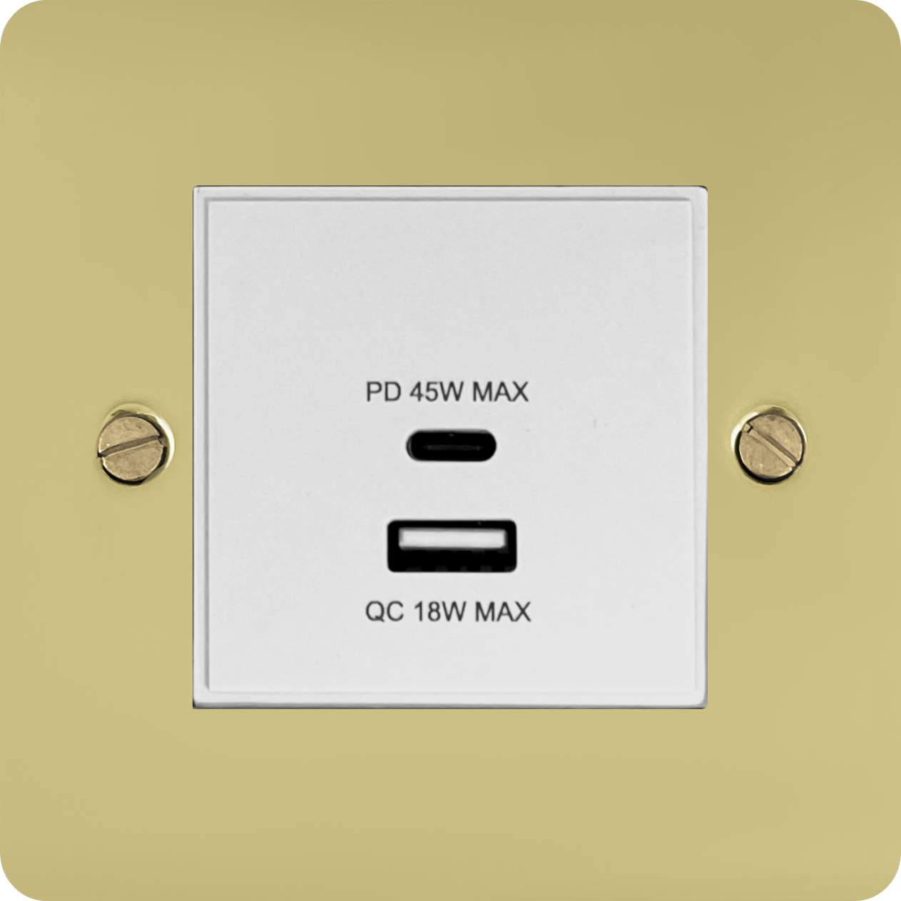 Flat Polished Brass Unlacquered USB Charger (Dual USB A + C Quick Charge) (1 Gang/White Insert) FL.43W.BUL