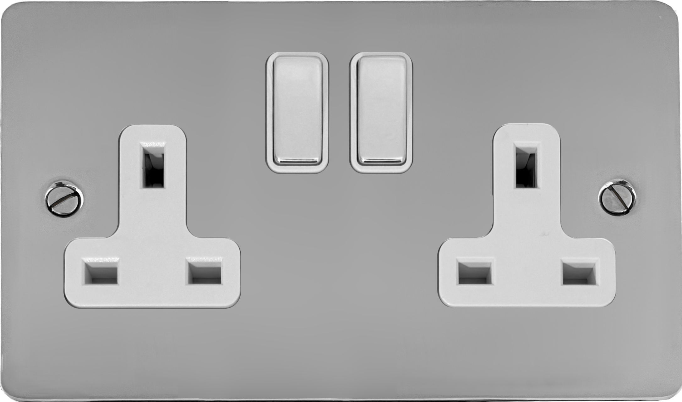 Flat Polished Chrome Double Socket (White Insert/Chrome Switches) FL.210.C