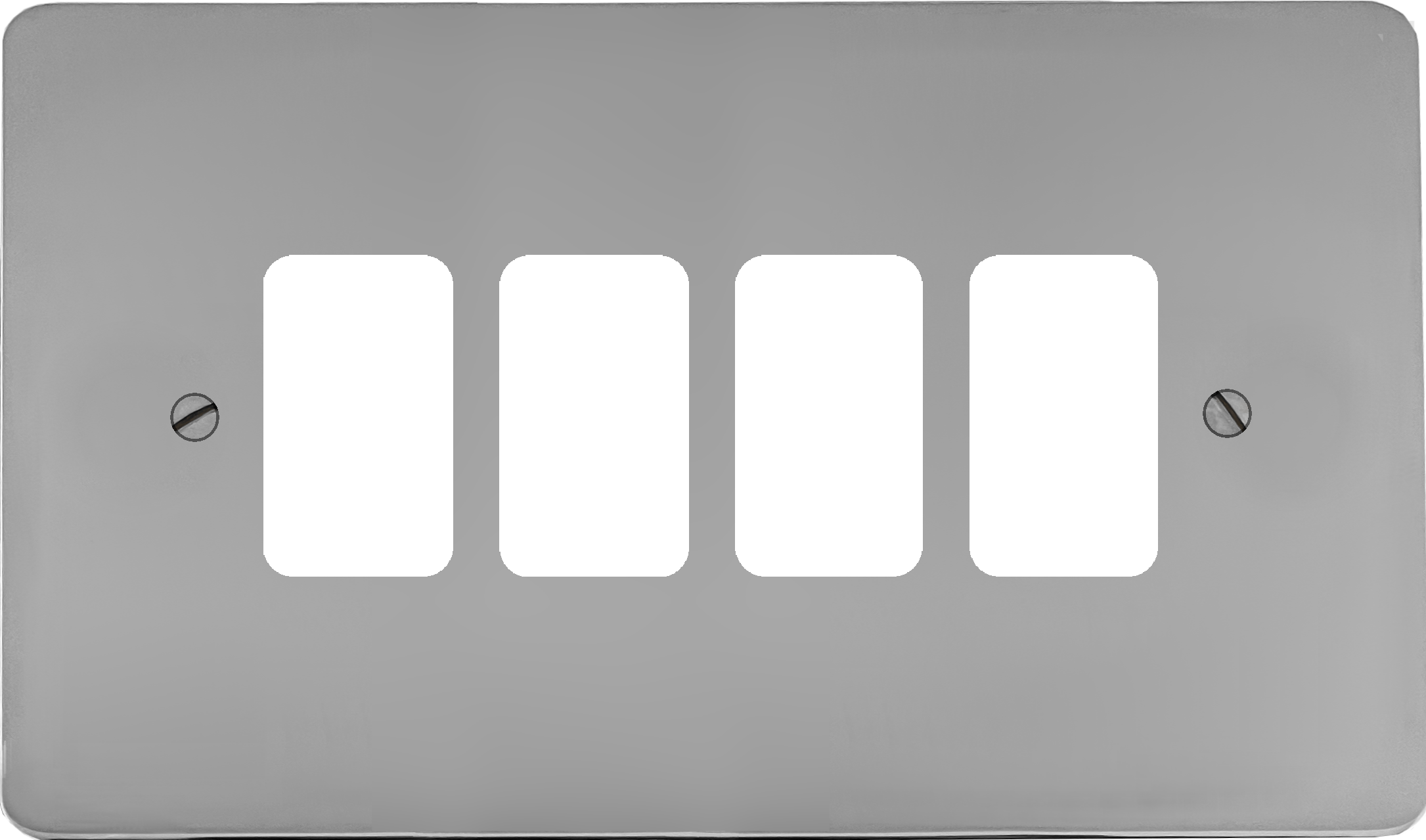 This is the 4 gang flat polished chrome grid plate from G+H Electrical Accessories.