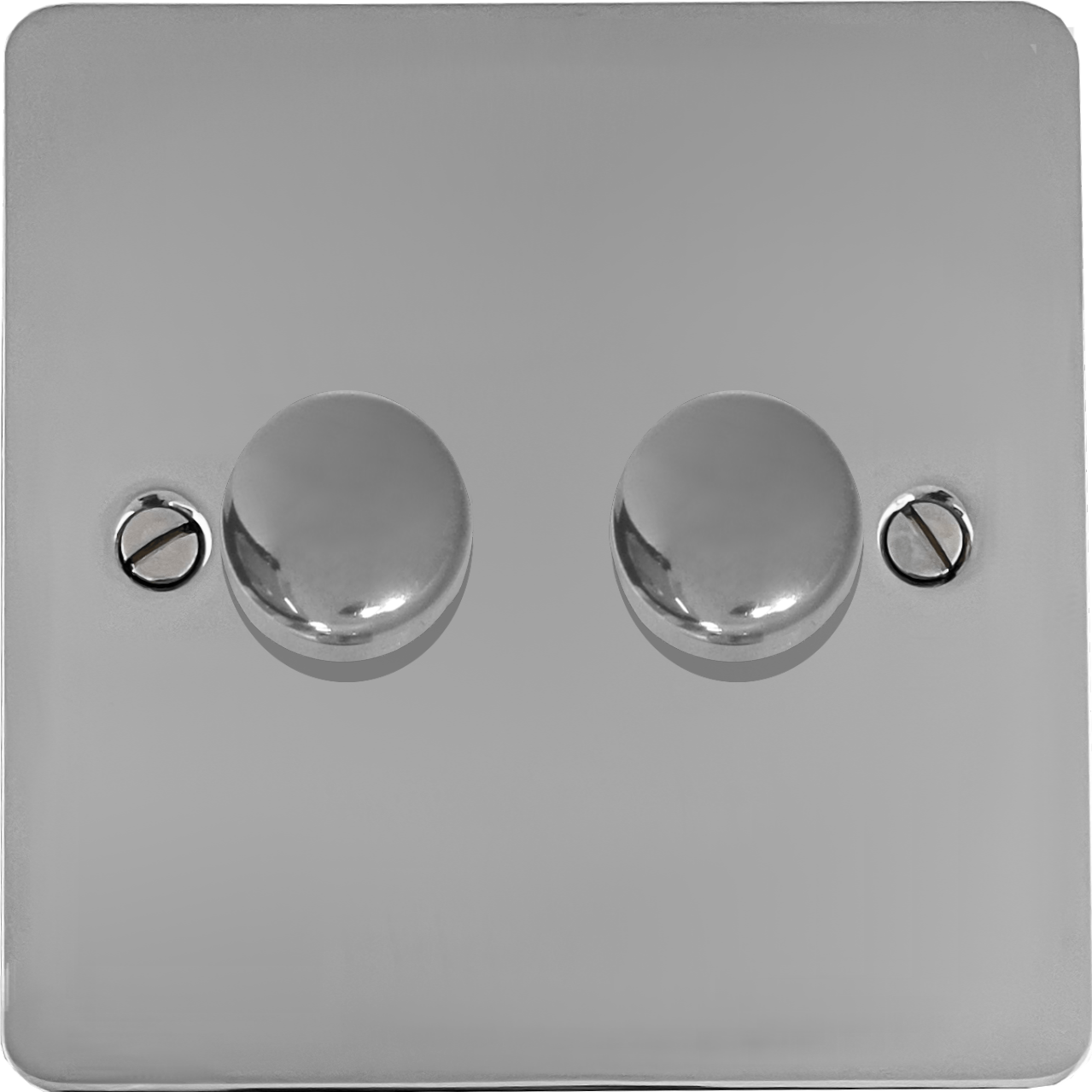This is a 2 gang 100W LED Dimmer on a flat polished chrome plate.