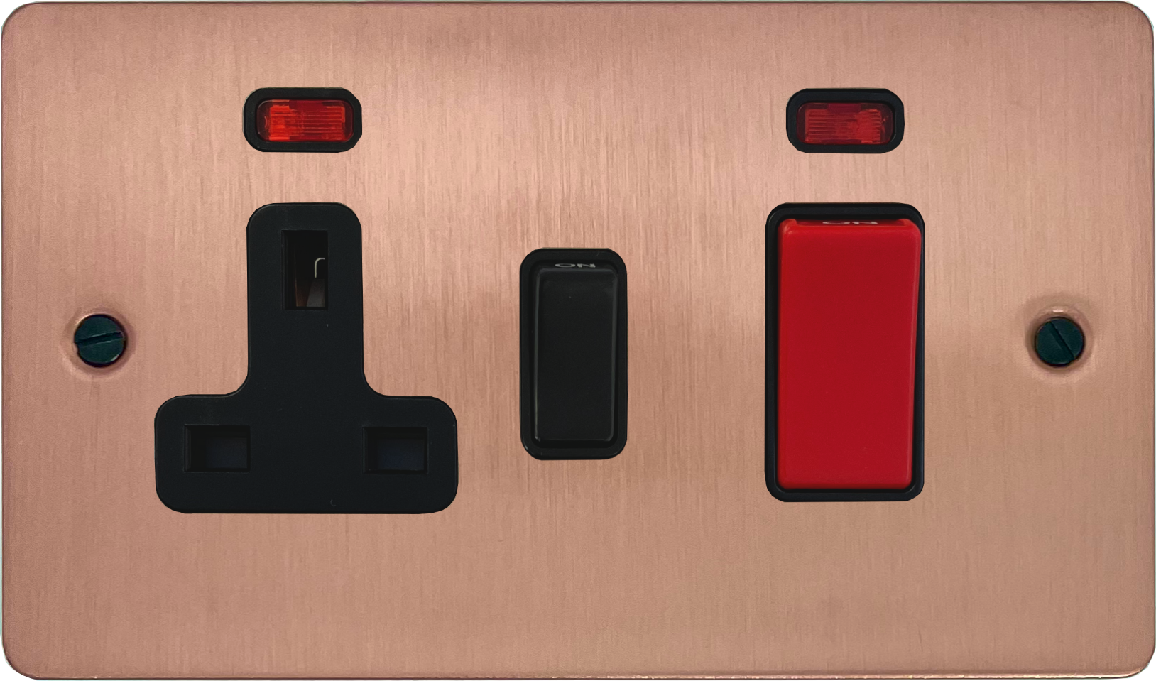 Flat Rose Gold Cooker Switch with Socket (Black Insert/Black Switch) FL.29B.RG