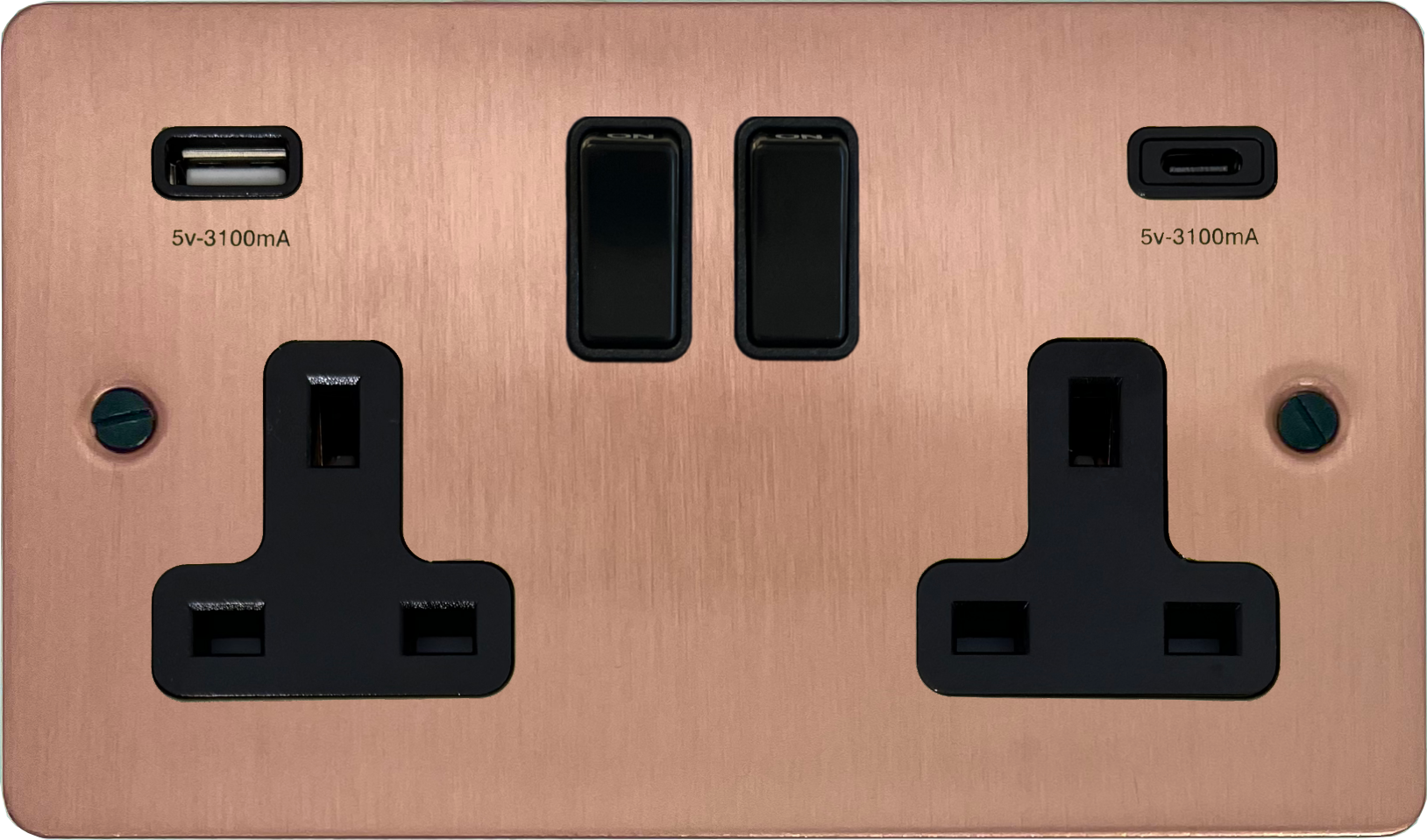 Flat Rose Gold Double Socket with USB (USB-A and USB-C/Black Switches) FL.911B.RG