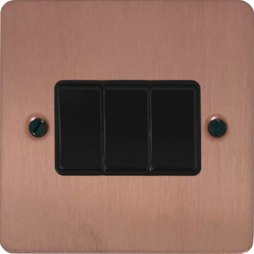 Flat Rose Gold Light Switch (3 Gang/Black Switch) FL.3B.RG