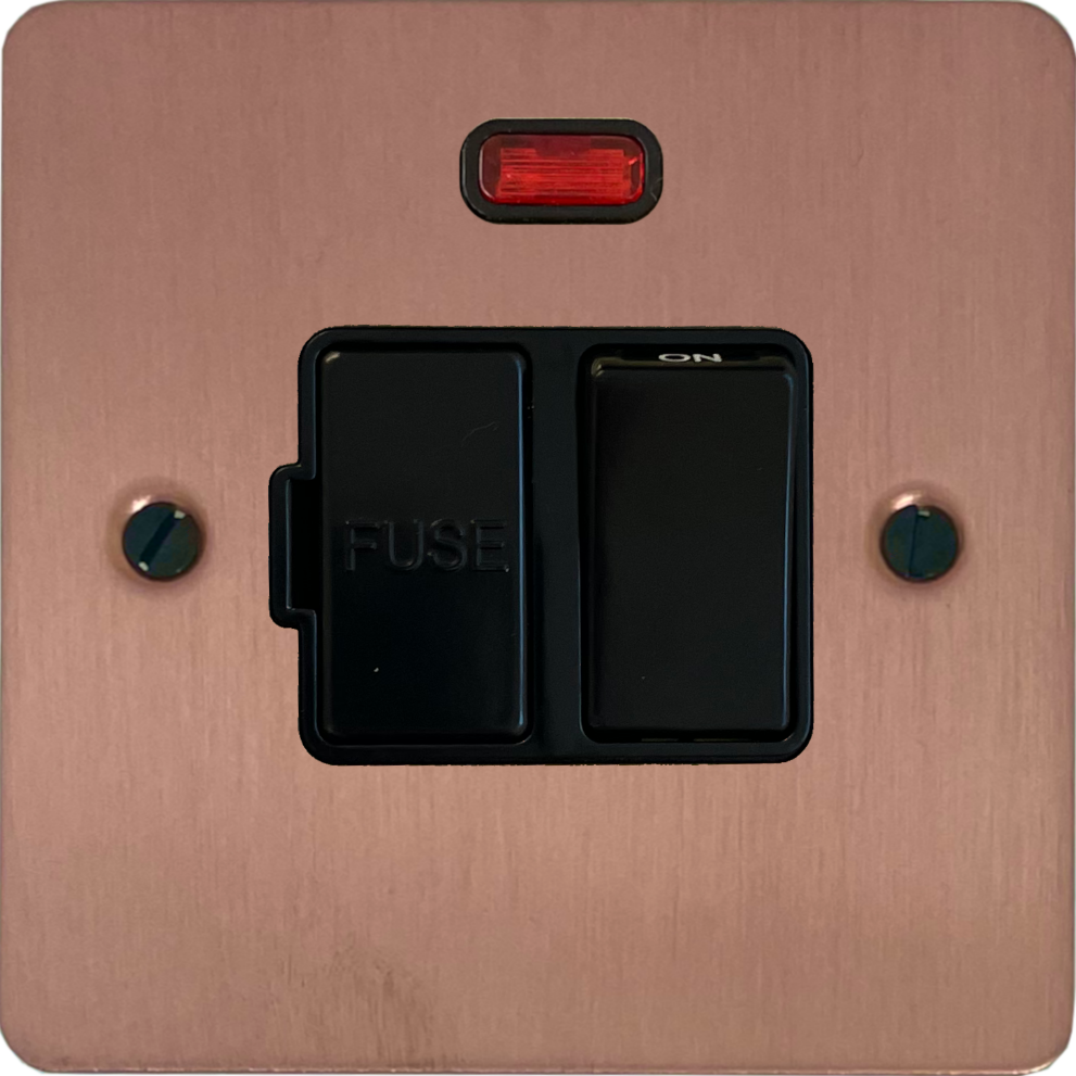 Flat Rose Gold Switched Fused Spur with Neon (Black Switch) FL.27B.RG