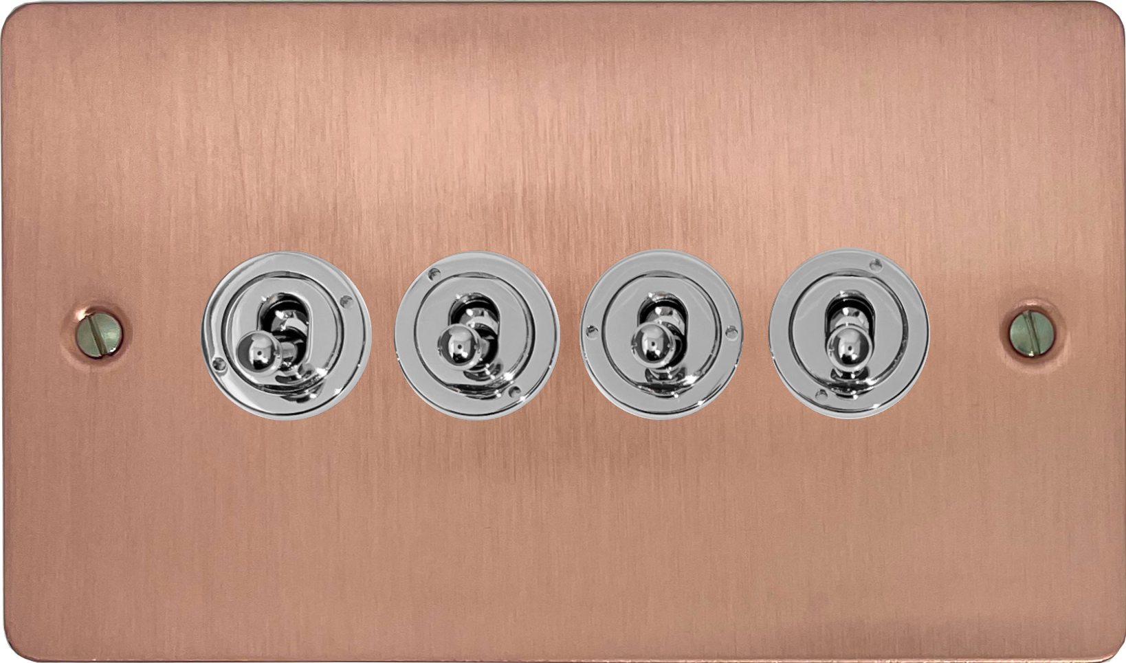 Flat Rose Gold Toggle Switch (4 Gang/Polished Chrome Toggle) FL.384PC.RG
