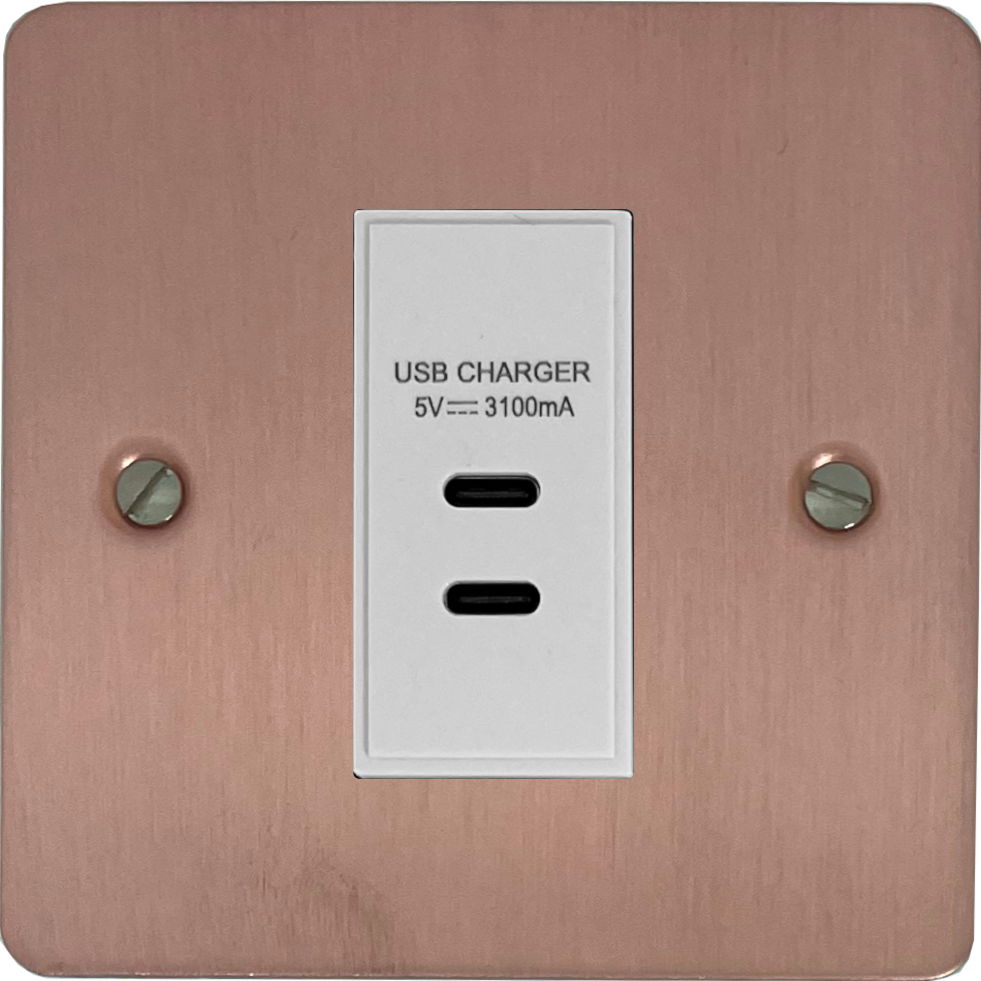 Flat Rose Gold USB Charger (2x USB-C) (1 Gang/White Insert) FL.42W.RG