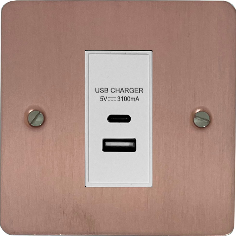 Flat Rose Gold USB Charger (USB-A and USB-C) (1 Gang/White Insert) FL.41W.RG