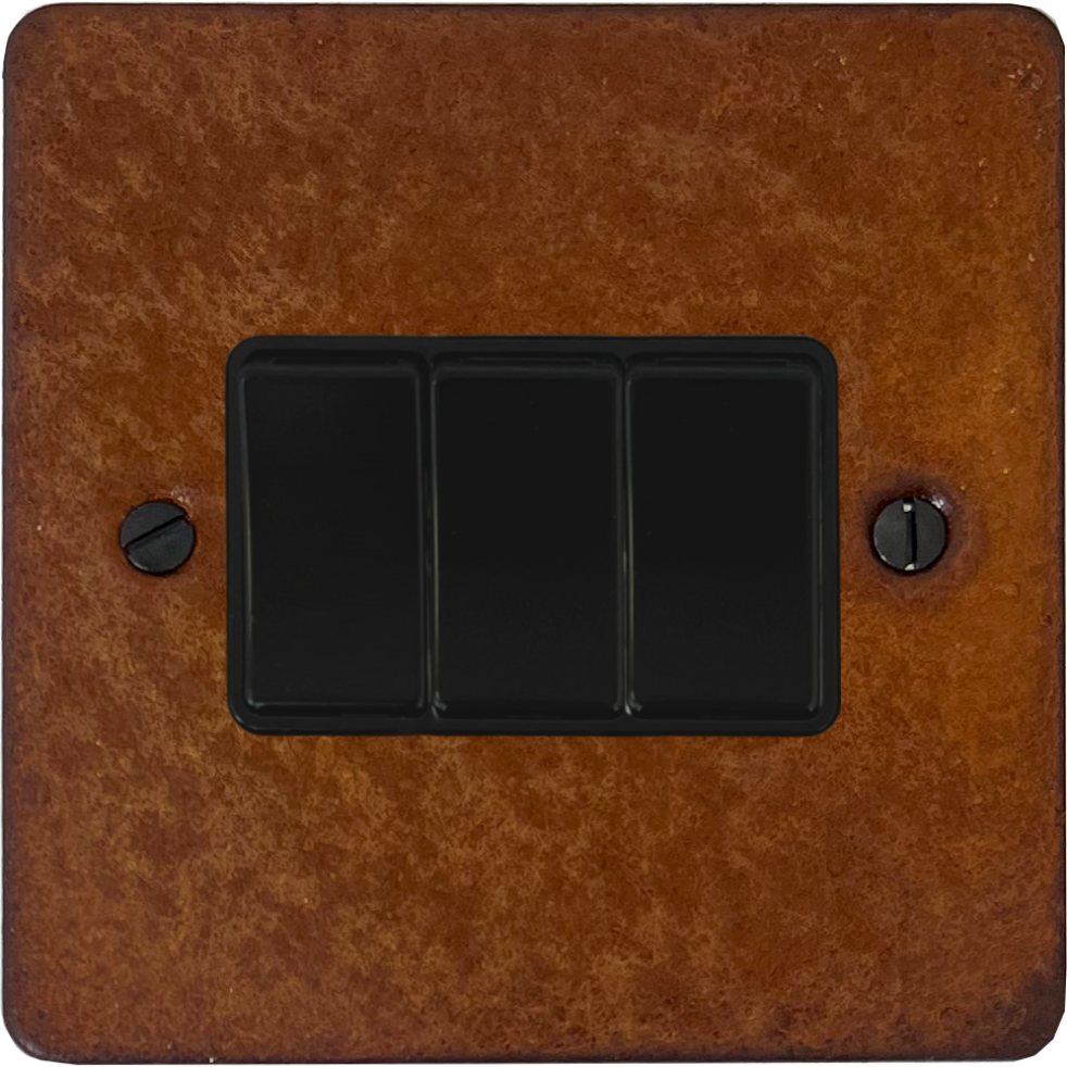 Flat Rust Light Switch (3 Gang/Black Switches) FL.3B.RT